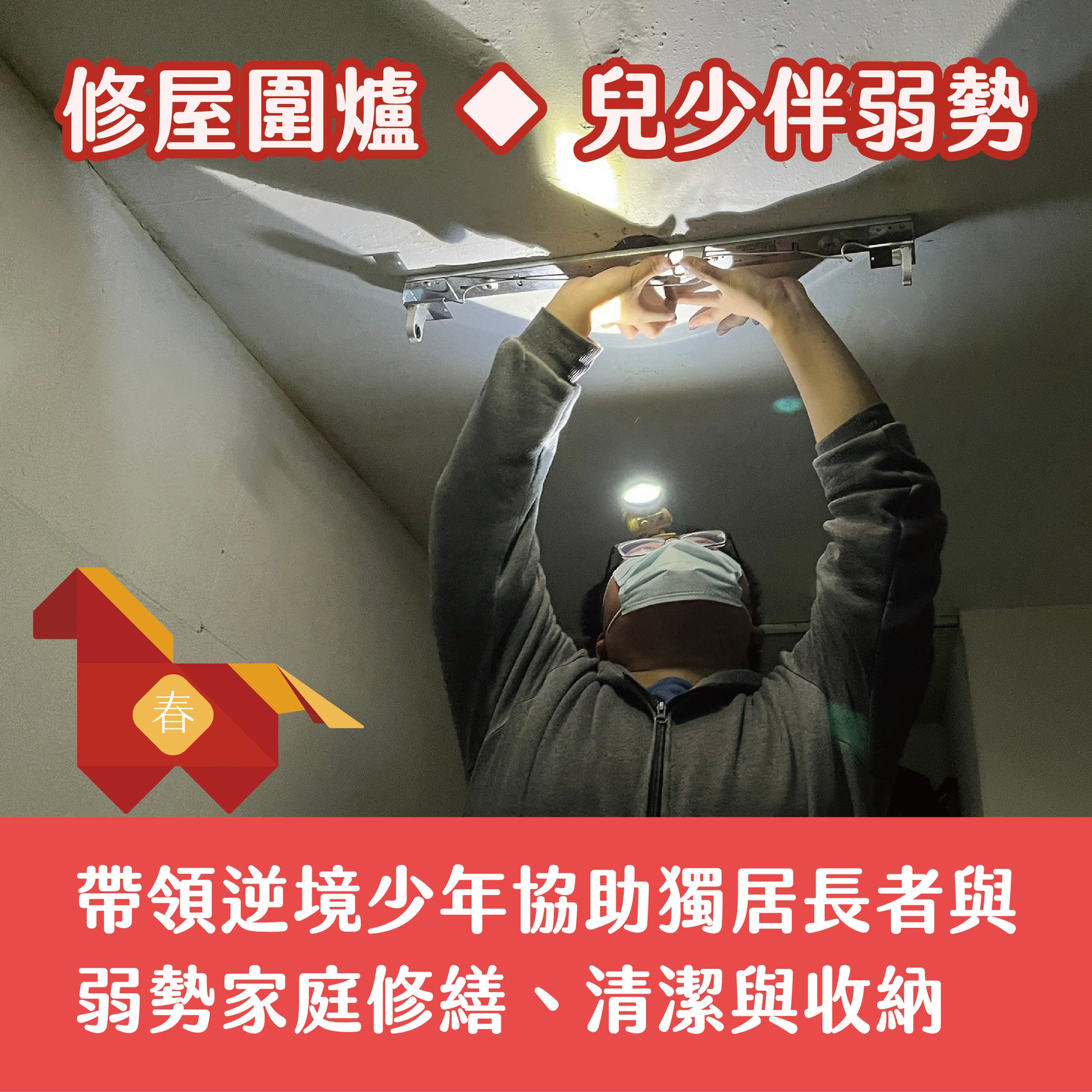 今年,少年工班將拜訪 3 戶獨居長者,協助他們修繕、打掃整理住處,並一起寫春聯、圍爐享用年菜。此外,我們還將拜訪 15 戶社區弱勢兒少與家庭,贈送年菜與過年物資,為他們帶來滿滿的溫暖。