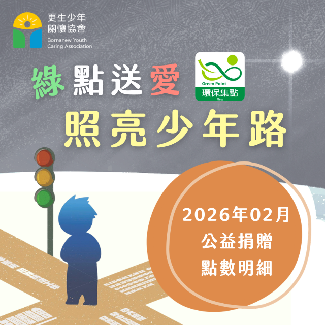 透過環保集點 APP, 選擇您想捐贈的點數面額,用綠點送愛,照亮少年路!