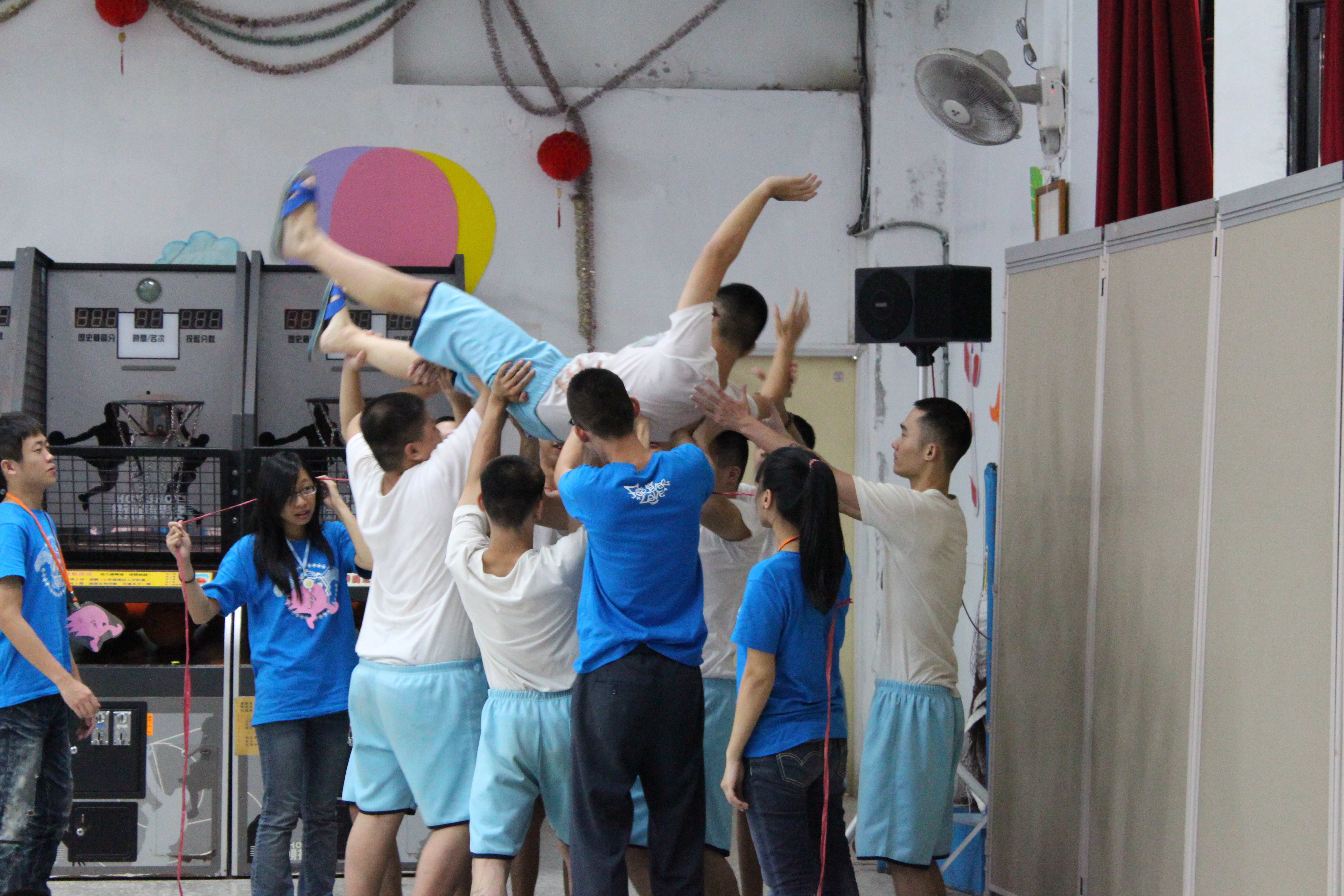 營隊第二天(8/8 上午),活動設計以『接納自我』為主題,首先透過『肢體釋放』來放鬆身體,少年們也跟隨著不同的音樂搖擺身體,他們都跳出不同的舞步,有的跳起街舞、地板動作與健身操,充分展現青春與活力,場面非常熱鬧、開心;接著進行『走台步』比賽,來協助少年建立自信心,發揮個人、團體特色,每位少年在走台步時,雖然面帶害羞的微笑,卻能抬頭挺胸地走,也有些少年利用「反毒」的動作來作為走台步的主題,充分展露力量、創意與自信心。 到了下午時,活動設計以『饒恕、溝通』為主題,透過遊戲『高低空繩索-飛躍人生三角洲』來探討溝通與問題解決的重要與方法,在挑戰過程中透過溝通討論的方式共同協調並合作通過難關得到勝利,活動中遇到很多挫折,但透過團隊的力量激發孩子們的鬥志,使他們了解團體合作與充分溝通的精神。
